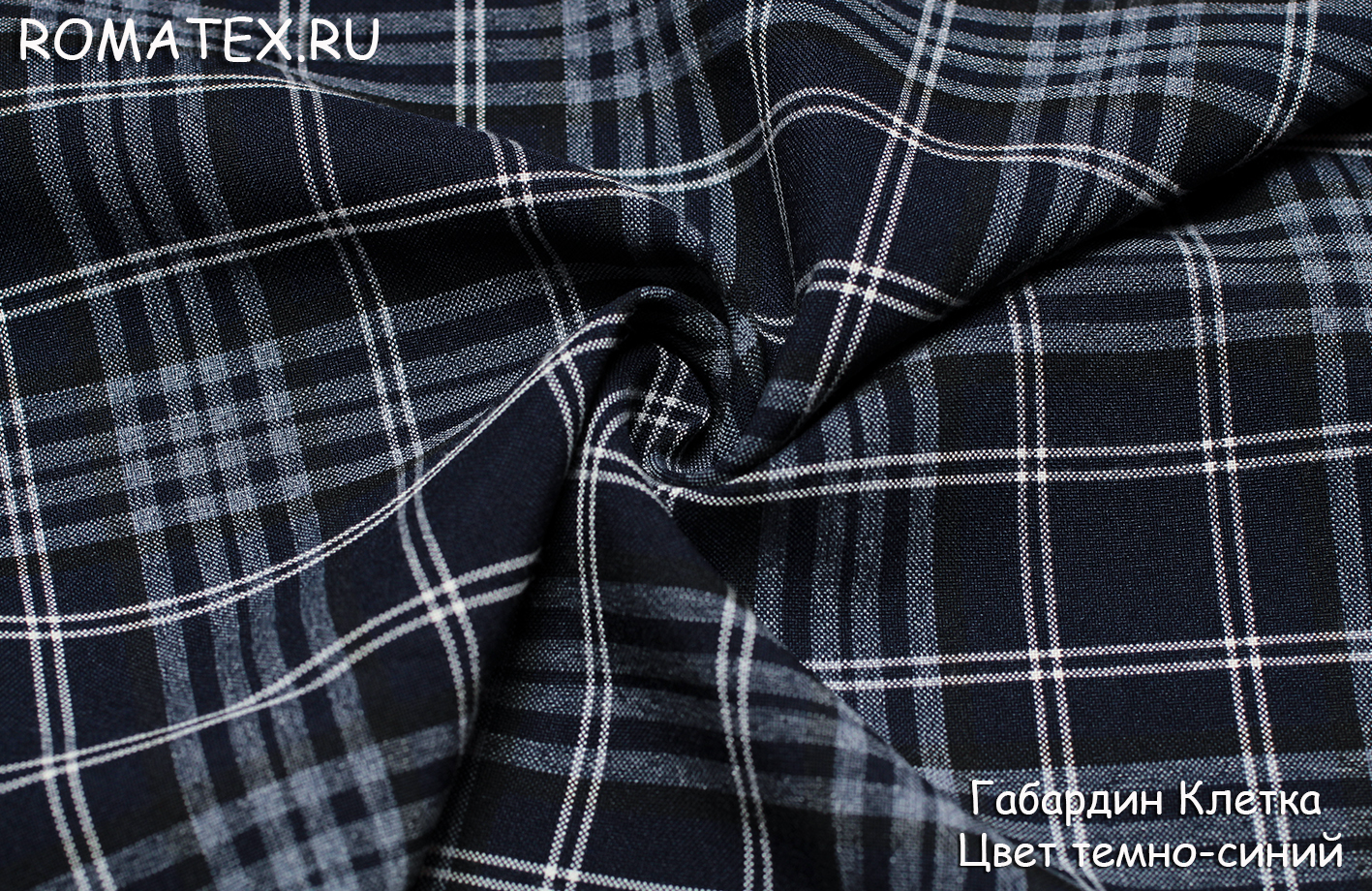 Ткань габардин клетка цвет темно-синий